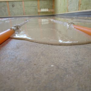 Kipsilattian paksuus on n.30 mm lämmitysputken päälle, kokonaispaksuuden ollessa n. 50mm.